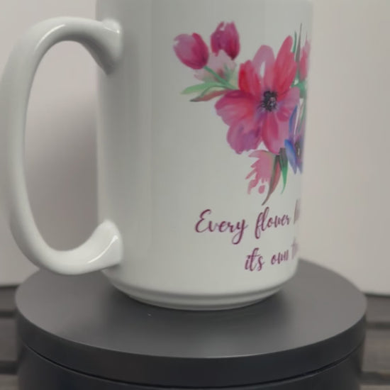 Every Flower Blooms in Its Own Time – Watercolor Floral Mug (15 oz)