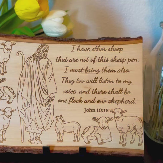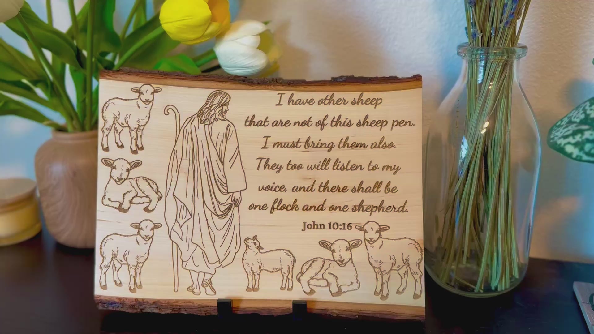 This meaningful hand-drawn engraved design features Jesus walking among His sheep with John 10:16, “There shall be one flock and one shepherd.” Every element is hand-drawn and engraved into natural basswood, offering a powerful visual of Christ’s love and acceptance. A heartfelt gift for pastors, ministries, or anyone moved by the Shepherd’s call.